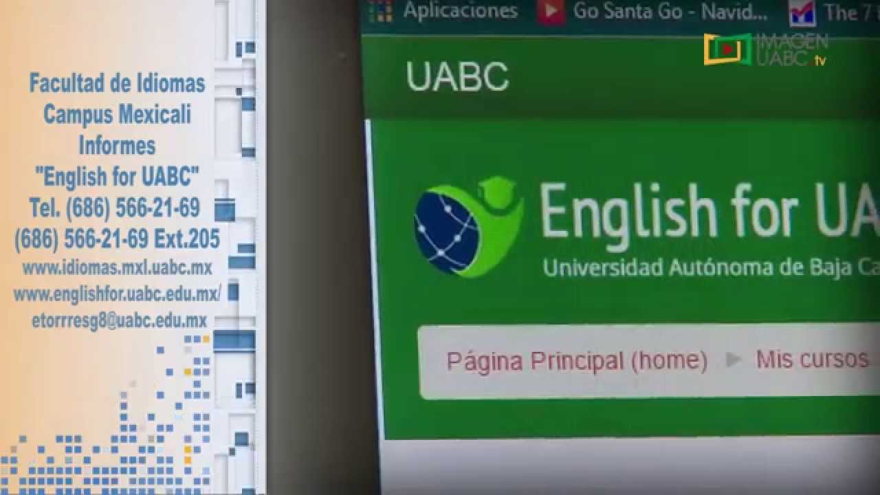 "English for UABC" es un curso en línea de inglés que promueve autonomía y habilidades de aprendizaje de una lengua extranjera a nivel básico de forma eficiente e interactiva a través de divertidas lecciones que cubrirán las habilidades de lectura, auditivas, escritura y oralidad, al igual que el vocabulario, gramática, pronunciación y uso del idioma, enfocándose a tus necesidades con propósitos de acreditación. Informes: Tel. (686) 566-21-69 (686) 566-21-69 Ext.205 www.idiomas.mxl.uabc.mx www.englishfor.uabc.edu.mx/ etorrresg8@uabc.edu.mx