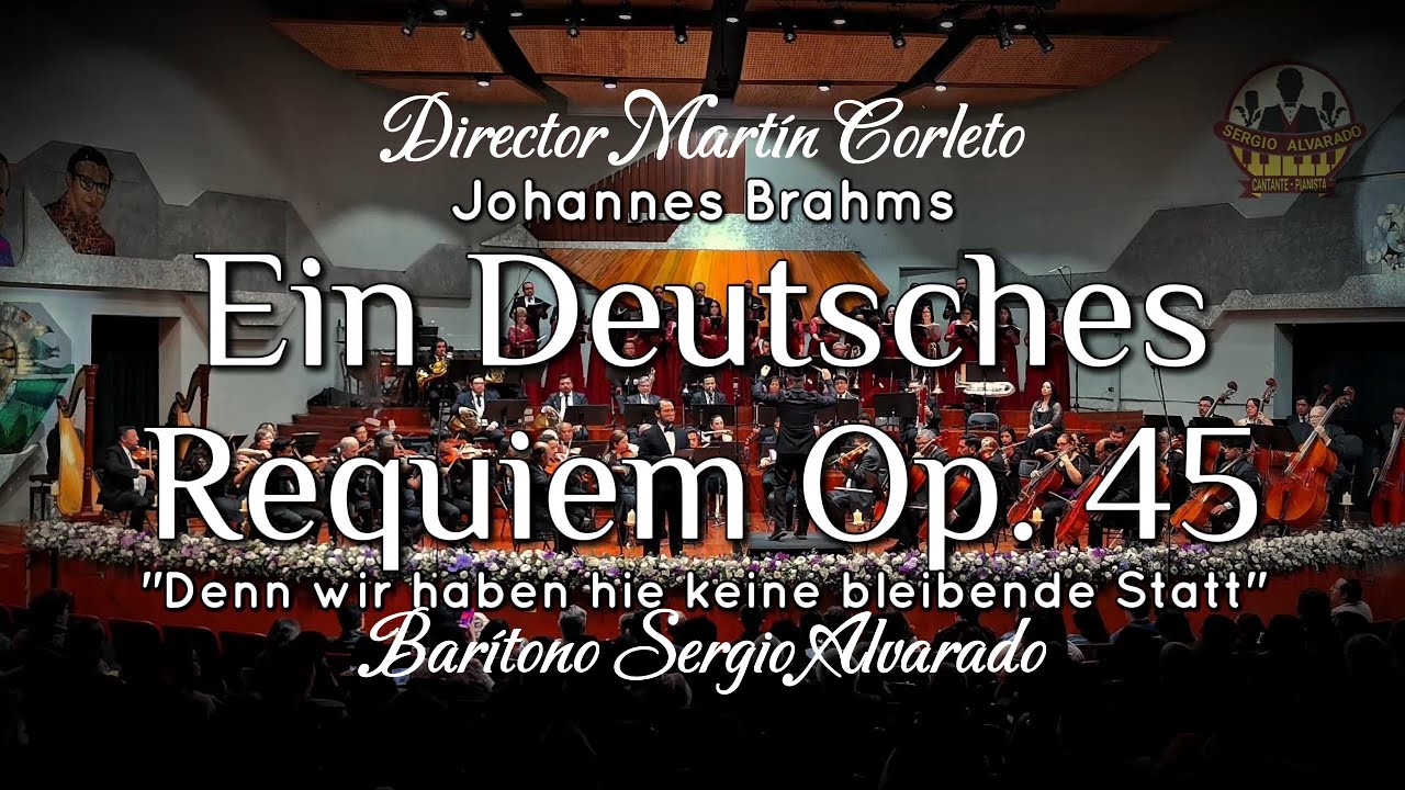 Presentación del 3er número "Denn wir haben hie keine bleibende Statt" Réquiem Alemán Op. 45 de Johannes Brahms. Interpreta: Barítono Sergio Alvarado Dirige: Martín Corleto Acompañan: Orquesta Sinfónica Nacional de Guatemala Coro Nacional de Guatemala
