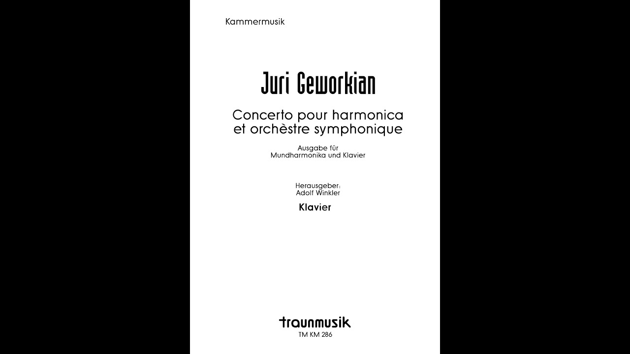 Musik: Juri Geworkian (*1931) ©-2003 by traunmusik Wien - Alle Rechte vorbehalten - www.traunmusik.at Im Original für Mundharmonika und Orchester (OM). Die Bearbeitung für die Kammermusikbesetzung erfolgte durch den Komponisten. Die Uraufführung gestalteten Franz Chmel (Mundharmonika) und das Schweizer Orchester Frohnleiten (2003). PDF Stimmensatz (KM): Mundharmonika und Klavier. Notenausgabe (Sheet Music) ist hier erhältlich: Sheet Music Direct: https://www.sheetmusicdirect.com/de-D... Sheet Music Plus: https://www.sheetmusicplus.com/en/pro... Für Mundharmonika und Orchester (OM), Mundharmonika und Klavier (KM), Klarinette und Klavier (KM), sowie Klarinette und Orchester (OM) erhältlich! Weitere Notenausgaben (Sheet Music) sind hier erhältlich: traunmusik auf Scoreexchange: https://www.scoreexchange.com/profile... Josef Peter Traun auf Scoreexchange: https://www.scoreexchange.com/profile... Notendrucke von traunmusik: https://www.traunmusik.at Falls Sie einen Ton- oder Videomitschnitt während einer Probe, einem Konzert oder vielleicht sogar eine Musikproduktion von einer oder mehrer meiner Kompositionen gemacht haben, ersuche ich um Zusendung des Ton- oder Videomaterials (mp3, mp4) für mein Archiv. Ich bin auch an Konzertprogrammen Ihrer Aufführungen im pdf-Format interessiert. Danke! If you’ve made a recording (sound or video file) during a rehearsal or a concert or even a music production of one of my compositions, I would be glad if you could send me all the realeted material (mp3, mp4) for my archives. I´m also interested in concert programms (PDF). Thank you! In Memoriam Franz Chmel (1944-2016): / @franzchm