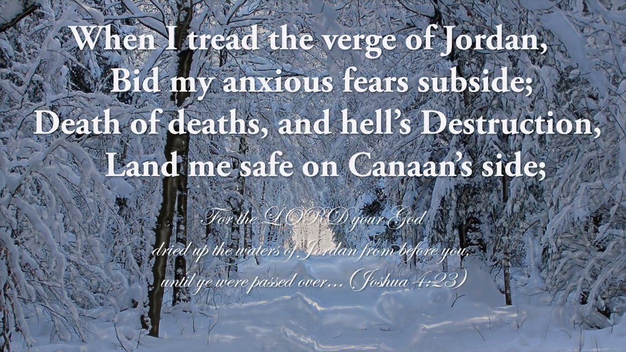 Psalm 73:23-28 23) Nevertheless I am continually with thee: thou hast holden me by my right hand. 24) Thou shalt guide me with thy counsel, and afterward receive me to glory. 25) Whom have I in heaven but thee? and there is none upon earth that I desire beside thee. 26) My flesh and my heart faileth: but God is the strength of my heart, and my portion for ever. 27) For, lo, they that are far from thee shall perish: thou hast destroyed all them that go a whoring from thee. 28) But it is good for me to draw near to God: I have put my trust in the Lord God, that I may declare all thy works. Gadsby Hymn 462: 1Guide me, O thou great Jehovah! Pilgrim through this barren land; I am weak, but thou art mighty; Hold me with thy powerful hand; Bread of heaven, Feed me now and evermore. 2 Open thou the crystal fountain, Whence the healing streams do flow; Let the fiery, cloudy pillar Lead me all my journey through; Strong Deliverer, Be thou still my strength and shield. 3 When I tread the verge of Jordan, Bid my anxious fears subside; Death of deaths, and hell’s Destruction, Land me safe on Canaan’s side; Songs of praises, I will ever give to thee.