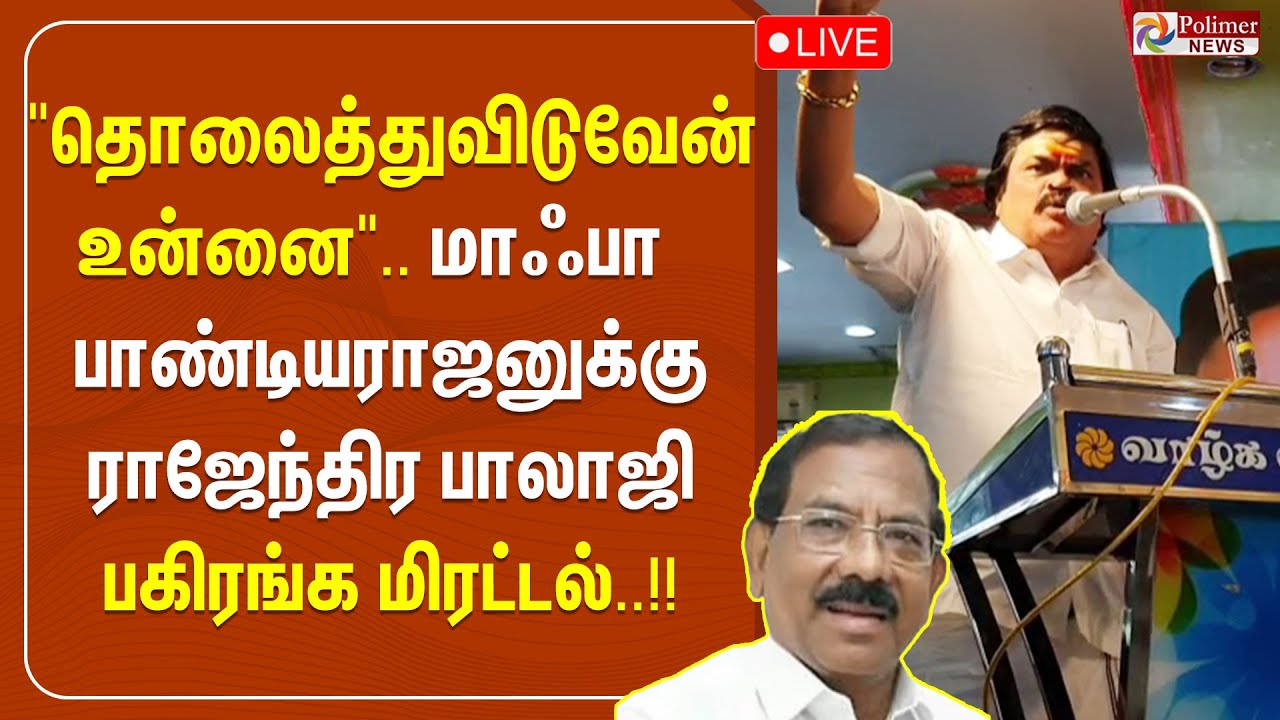 "தொலைத்துவிடுவேன் உன்னை" - மாஃபா பாண்டியராஜனுக்கு ராஜேந்திர பாலாஜி பகிரங்க மிரட்டல் #admk | #RajendraBalaji | #Speech | #PolimerNews #Pandiarajan #Threatened #Issue #ADMKRajendraBalaji #ADMKParty #Meet #Event #Function #Pressmeet #Pressmeetlive #pressconference Watch Polimer News, Tamil Nadu’s No. 1 news channel, live! Catch breaking news and live reports as they emerge around the world. Stay updated on the latest stories from the worlds of politics, entertainment, sports, business, social media and so much more. Polimer News is your trusted source for crisp and unbiased news. Watch now!. #PolimerNews | #PolimerNewsLive | #LivePolimerNews | #Polimer | #TamilNews | #NewsLive | #LiveNews | #LiveTamilNews | #LiveNewsTamil | #TamilLiveNews | #BreakingNews | #PolimerBreaking | #LatestNews | #PolimerLatestNews | #TopNewsStories | #TamilNewsChannel ... to know more watch the full video & Stay tuned here for the latest Tamil News updates... Android: https://goo.gl/T2uStq iOS: https://goo.gl/svAwa8 Polimer News App Download: https://goo.gl/MedanX Subscribe: / polimernews Website: https://www.polimernews.com Like us on: / polimernews Follow us on: / polimernews About Polimer News: Polimer News brings unbiased News and accurate information to the socially conscious common man. Polimer News has evolved as a 24 hours Tamil News satellite TV channel. Polimer is the second-largest MSO in Tamil Nadu, catering to millions of TV viewing homes across ten districts. Founded by Mr. P.V. Kalyana Sundaram, the company currently runs eight basic cable TV channels in various TN and Polimer TV channels, a fully integrated Tamil GEC reaching millions of Tamil viewers worldwide. The channel facilitates the production of art in Chennai. Besides a library of more than 350 exclusive movies, the channel also beams 8 hours of original content every day. Polimer News extends its vision to various genres, including reality. In short, it aims to become a strong and competitive channel in the GEC space of the Tamil television scenario. The biggest strength of the channel is its people, who are a bunch of best talents in its role. A clear vision backed by the best brains gives Polimer a clear cut edge over its competitors in the crowded Tamil TV landscape.