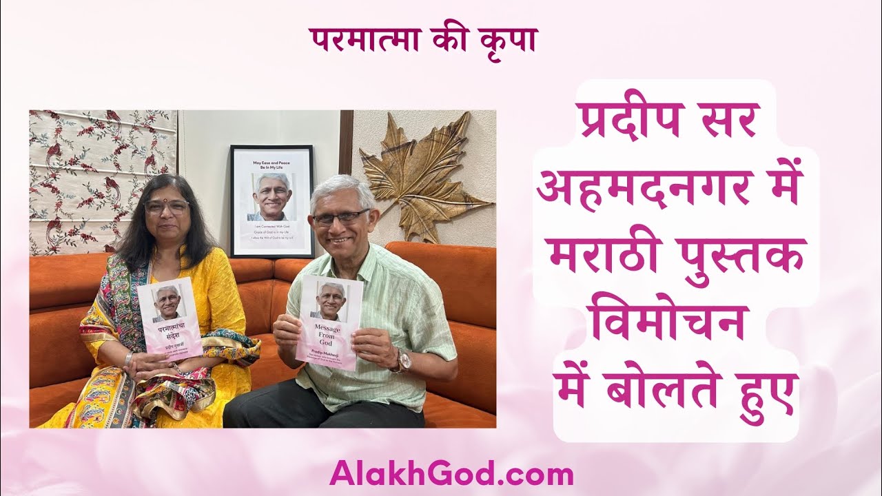 अहमदनगर में मराठी पुस्तक विमोचन के अवसर पर, फाल्गुनीजी की उपस्थिति में प्रदीप सर ने सम्पूर्ण मानवता को एक अमूल्य संदेश भेट दी उन्होंने मानवता को एक गरीमापूर्ण जीवन जीने का सरल मार्ग दिखाया - परमात्मा का साथ धर्म और अध्यात्मता के ठेकेदारों ने मानवता को भिकारी बना दिया है। अब एक विकल्प है - परमात्मा ~~~ प्रदिपजी, परमात्मा के संदेश वाहक और फाल्गुनीजी, भगवती की ऊर्जा को वर्षाती, केवल आपका मंगल चाहते हैं । उनका किसी धर्म, मजहब या आध्यात्म से कोई लेना देना नही है। ~~~~~ प्रदिपजी सरल माध्यम से सच्चे परमात्मा की कृपा पूरी मानवता के लिए सहजता और शांति का रास्ता बना रहे हैं: ~ परमात्मा के स्वरूप का फोटो और हीलिंग कार्ड: http://tinyurl.com/2kwxs72n ~ प्रदिप मुखर्जी द्वारा लिखी हुई परमात्मा की पुस्तक, परमात्मा का संदेश; अंग्रेजी, गुजराती, हिंदी, तेलुगु और मराठी में उपलपध है: http://tinyurl.com/mvnje8bn ~ परमात्मा से जुड़ने और 24×7 जुड़े रहने के लिए , परमात्मा का मंत्र आज़माएं: http://tinyurl.com/3ecu256w #God #Goddess #Bhagwati #Parmatma #FalguniPathak #PradipMukherji #moksha #PradipSir #MessageFromGod #परमात्माकासंदेश #हीलिंग #healing #शांति #shanti #relax #audio #healer #hindi #marathi #books #booklaunch #news #dignity #begging #human #humanity #whyareyouhere #whyareyoureadingthis #alivebook #islam #christianity #onegod #truegod #maharashtra #marathibook #marathilive #marathivlog #buddhism #hinduism #jainism #jewish #ahmednagar #ahmednagarnews