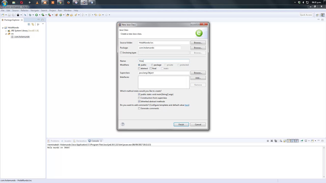 Cómo hacer el programa "hola mundo" en JAVA usando el IDE Eclipse.
